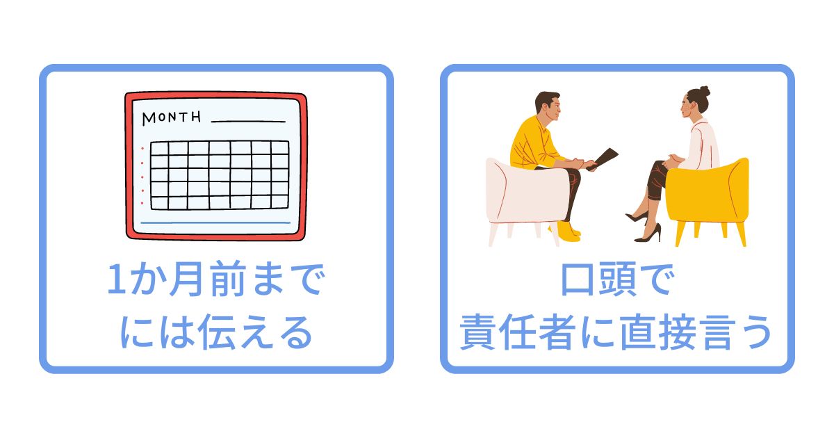 いずれにしても早めに伝えるに越したことはありませんので、辞める意思が固まったらなるべく早い段階で伝えるようにしましょう。前もって伝えておくことで、雇用する側も余裕をもって準備することができるため、よりスムーズな退職が可能になります。