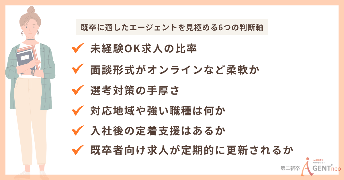 ・既卒者は「未経験歓迎」や「定着支援」があるエージェントを選ぶべき
